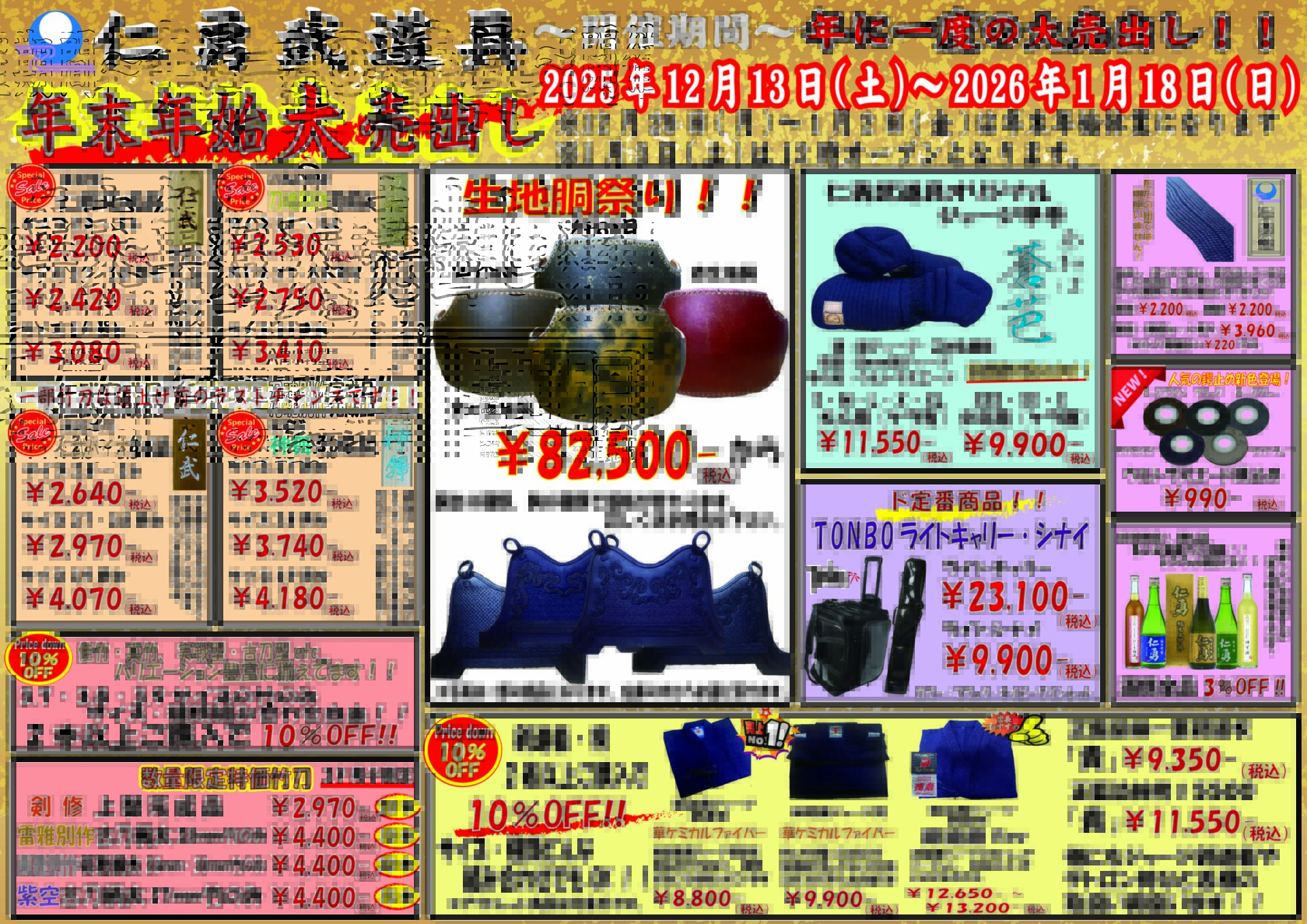仁勇武道具では、数多く豊富な商品を揃えています。上野の店舗では、実際に見ていただくことができます。